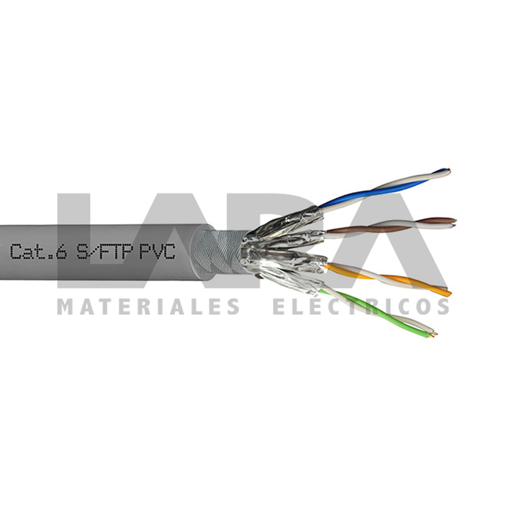Cable S/FTP Categoría 6 diseñado para transmisión de datos de alta velocidad, garantizando una conexión estable, segura y libre de interferencias electromagnéticas.