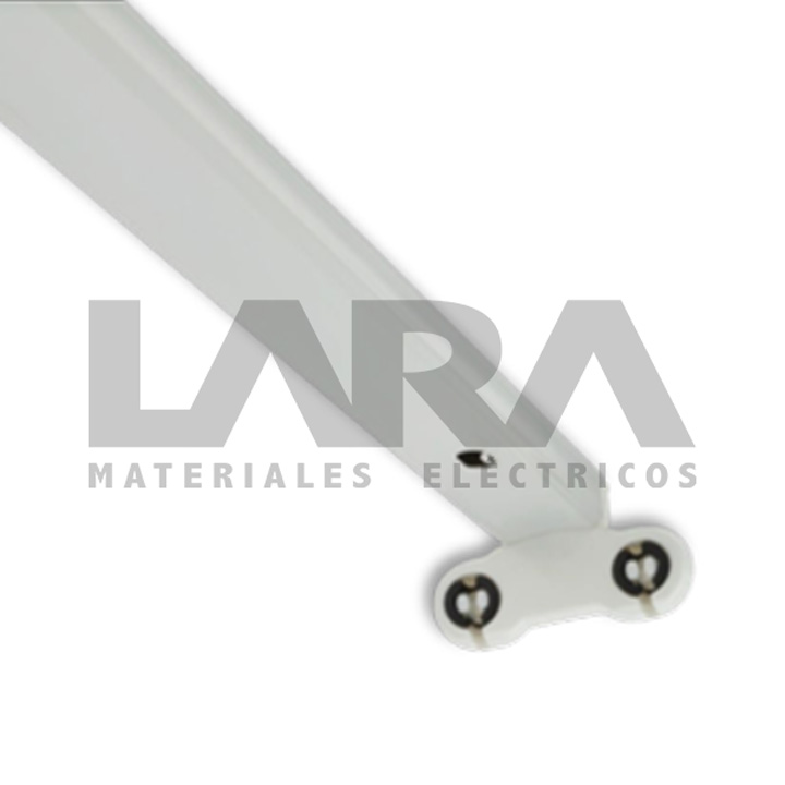 Luminaria tipo canoa diseñada para alojar tubos LED, para aplicaciones de iluminación general en interiores.