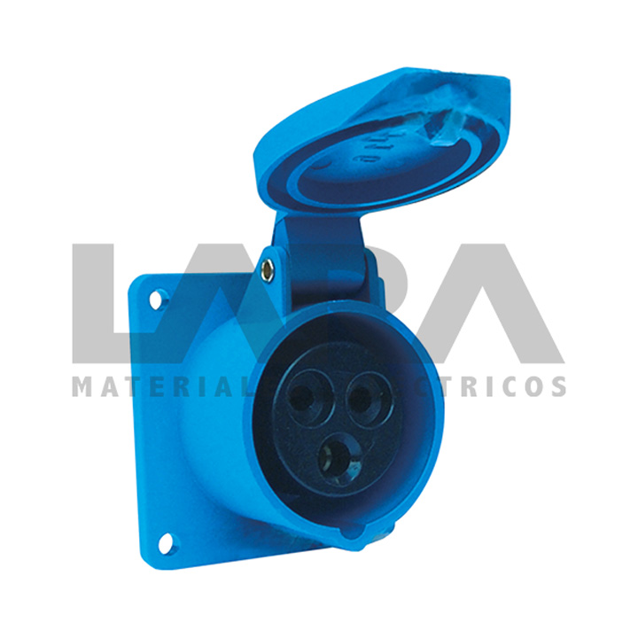 Enchufe industrial hembra embutida construido en plástico de alto impacto con contactos de cobre niquelados