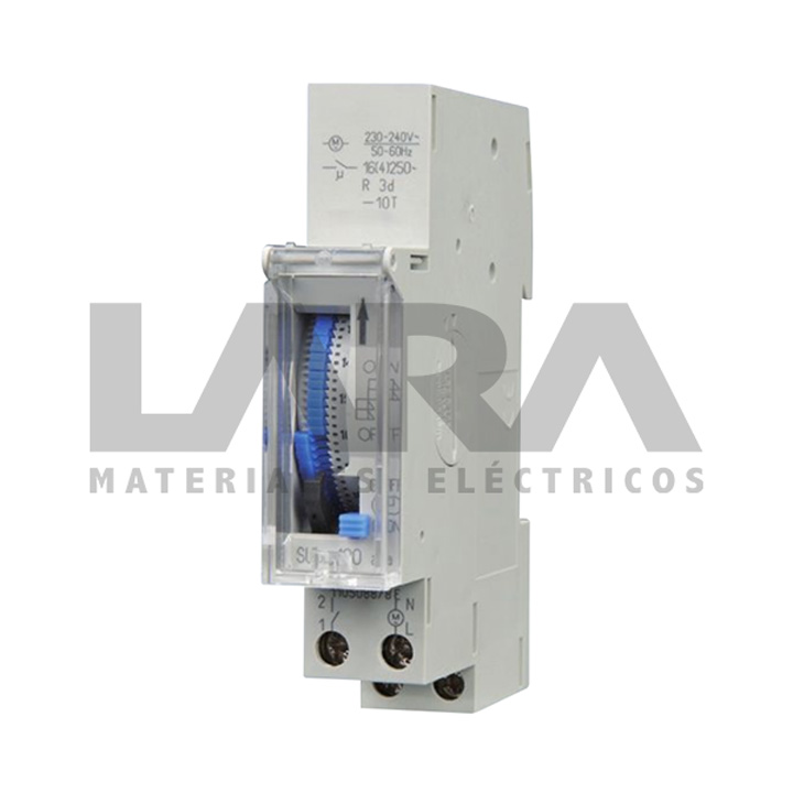 Reloj interruptor horario analógico SUL-180A diseñado para automatizar el control de circuitos eléctricos mediante la programación de encendidos y apagados automáticos. Su diseño permite optimizar el consumo energético, reducir la intervención manual y garantizar un funcionamiento eficiente en aplicaciones industriales, comerciales y residenciales.
