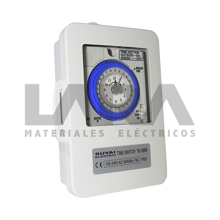 Reloj interruptor horario analógico TB-388R diseñado para automatizar el control de circuitos eléctricos mediante la programación de encendidos y apagados automáticos de equipos, permitiendo optimizar el consumo energético y reducir la intervención manual en aplicaciones industriales, comerciales y residenciales.