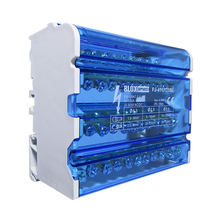 Repartidor tetrapolar diseñado para distribuir de manera segura y ordenada alimentación, derivación y distribución de fases, neutros o tierras dentro de un tablero eléctrico. Fabricado con barras de conexión en bronce, cubierta frontal auto-extinguible y placa trasera aislante. Corriente máxima admisible 125A, tensión de aislación 500VAC, montaje a riel din de 35 mm o con pernos de fijación
